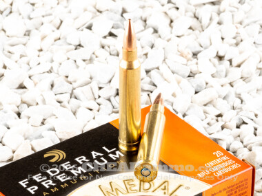 The 300 Winchester Magnum is a great medium for the long distance shooter to work in. While it takes an absolute madman to pull it off, shots exceeding two miles have hit their targets with this cartridge before! If you’re setting your sights high and zeroing in out to oblivion, you need a round worthy of your lofty aspirations. This Gold Medal round by Federal will get you there.