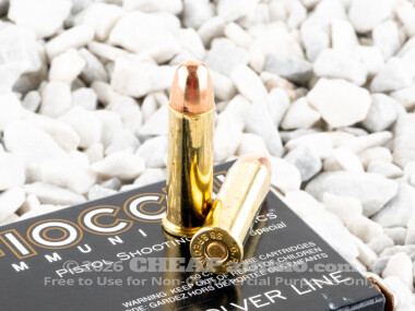 This round is loaded with a heavyweight 158 grain projectile – the only reason why its muzzle velocity clocks so low at 730 fps. As a full metal jacket, the bullet has precisely the copper-alloy coating it needs to decelerate fouling inside a revolver’s barrel. The FMJ’s round nose profile isn’t ideal for a lever-action rifle’s tubular magazine, although it does streamline the bullet to promote greater overall accuracy.