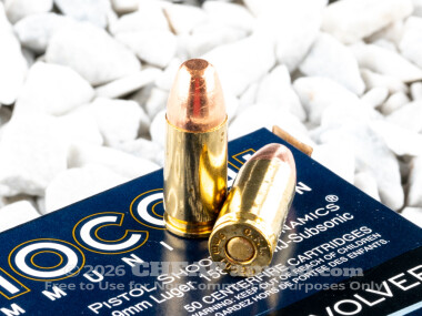 This noncorrosive, brass-cased and reloadable ammo is loaded to standard pressure. It should reliably cycle any semi-automatic 9mm firearm.