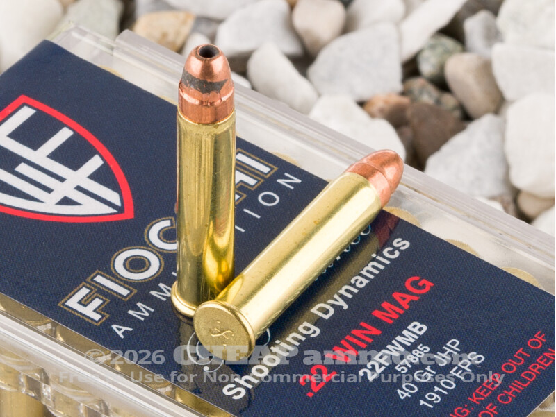 Fiocchi - Jacketed Hollow Point - 40 Grain 22 Magnum Ammo - 2000 Rounds