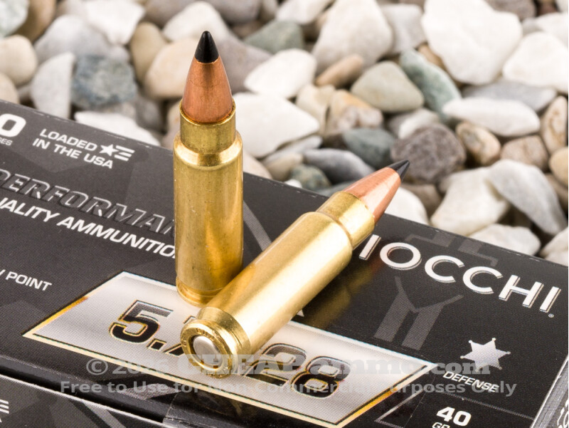 This is not SS197SR spec ammo. It does have the same 1,750 fps muzzle velocity, and it does have a 40 grain polymer tipped bullet – but the bullet isn’t the Hornady V-MAX, which the SS197SR includes by definition. That said, Fiocchi’s tipped hollow point functions on the same principle: high-velocity collision forces the tip’s shaft to drive into the lead core’s underlying nose cavity, which ultimately causes terminal expansion. It’s effective terminal ballistics for personal protection, and the threat probably won’t be able to tell the difference.