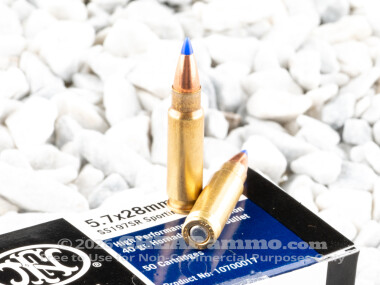The 5.7x28mm round was developed in 1991 by FN Herstal as a potential replacement for the ubiquitous 9mm Luger. Developed completely from scratch the 5.7mm was designed to be smaller, so be able to offer more rounds per weight ration, with a high velocity that could defeat body armor if necessary. The round was essentially meant to be a fmj .22 WMR loaded into a reloadable case. The 40 grain V-Max bullet by FN has a muzzle velocity of 2034 feet per second with 367 foot pounds of energy. V-Max polymer tips offer ideal ballistics and accuracy and expansion upon entry into the target. This is a round suitable for varmint hunting, range training as well as personal defense. 2000 rounds is perfect for keeping on hand for range day or dooms day. Either way, you’ll be ready.