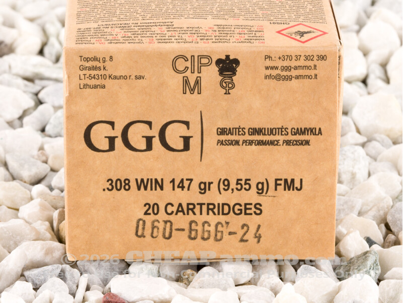 GGG - Full Metal Jacket - 147 Grain 308 Winchester Ammo - 600 Rounds