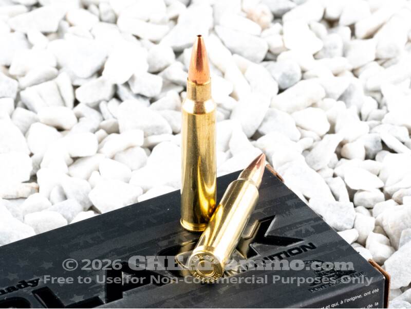 Hornady loads this 223 Rem cartridge with a behemoth of a .22 cal bullet. At 75 grains, its muzzle velocity out of a 24” barrel is relatively slow at 2,790 fps. The juice is well worth the squeeze, however, as such a chunky bullet excels at holding onto its momentum. Cross and vertical winds have less effect on its trajectory, too!