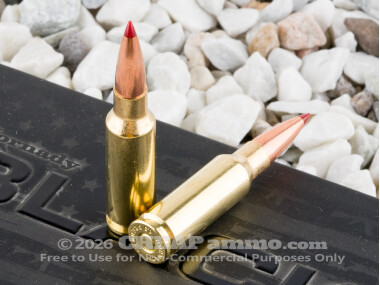 The ELD Match showcases Hornady’s proprietary Heat Shield tip. It’s made of polymer that doesn’t get warped by the heat of aerodynamic friction, so it always stays sharp and aerodynamic. The ELD Match’s ballistic efficiency is further heightened by its AMP jacket (concentric), secant ogive profile (low drag), and boat tail (ditto). The 123 grain bullet’s 0.506 G1 (0.255 G7) ballistic coefficient (24” test barrel) speaks for itself. Centered up 1.5”, it’ll soar to a 200-yard zero in 0.25 seconds, and then drop -9.2” once it’s reached 300 yards.