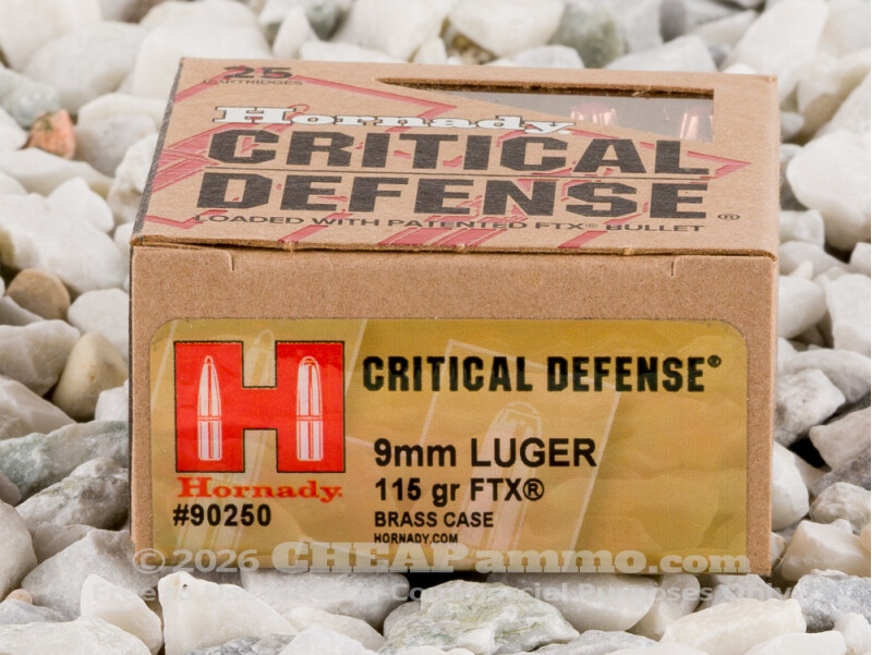 The 9mm has become the most popular centerfire handgun caliber in the world, both within and without militaries of the world. The relative low cost of target ammo has kept the 9mm Luger at the forefront of the civilian market for target shooting and training. Further, for self defense ammunition 9mm is no less versatile and the Hornady Critical Defense round is one of the most popular. The full metal jacketed flex tip bullet is the perfect blend of penetration and expansion into the target. The poly tip serves in many jurisdictions as a non hollow point, where HP ammunition is prohibited, and for better ballistics, This round has a muzzle velocity of over 1135 feet per second and strikes with just under 330 foot pounds. When lives are on the line, Critical Defense is what matters.