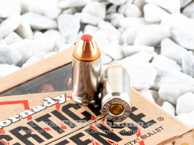 Hornady has been making premium hunting and self defense ammunition since the 1960s. Their flex tip bullet design maximizes aerodynamic performance with expansion to transfer all the kinetic energy into the target for maximum stopping power. The nylon tip may also omit this ammunition from bans against hollow points (check local laws), but it certainly helps reduce clogging while penetrating heavy clothing. Cases are boxer primed for reloading purposes.