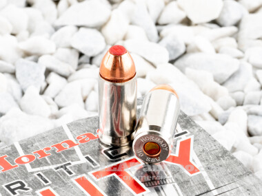 This 40 S&W cartridge is from Hornady’s Critical Duty line of ammunition, and accordingly ideal for personal protection. Its 175 grain FlexLock bullet’s name is a portmanteau of two of Hornady’s innovative barrier-defeating features: the Flex Tip and the InterLock ring. The columnar polymer Flex Tip sits in the bullet’s hollow point nose cavity, preventing detritus like fabric and drywall gypsum from clogging it and impacting its ability to commence expansion. The FlexLock’s jacket possesses a ring that embeds it in the core, so the two remain virtually inseparable throughout all stages of penetration. The result speaks for itself -- a deep and wide wound channel which earns the FlexLock an impressive score on the definitive FBI test protocol.