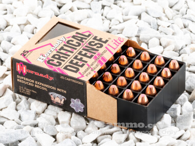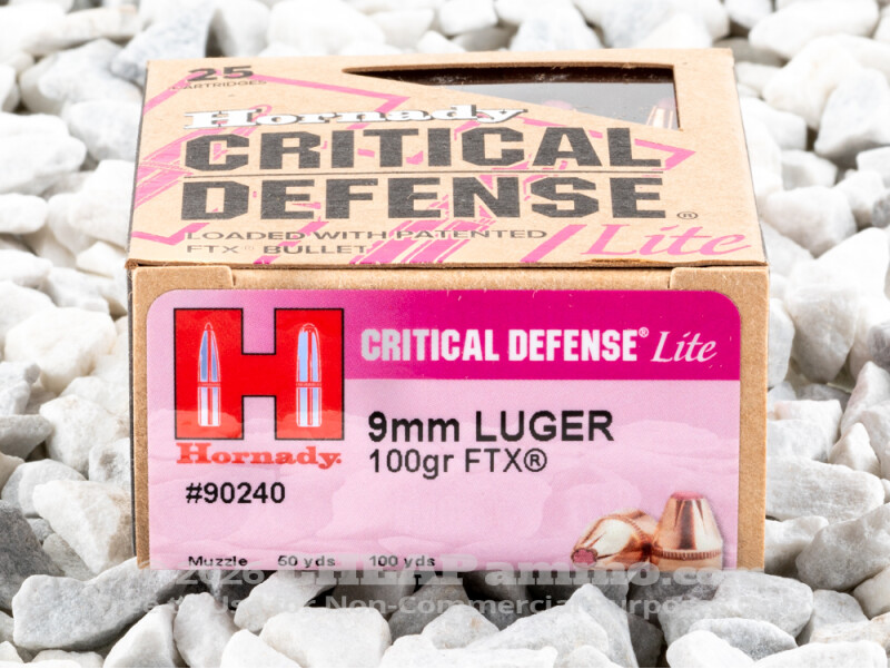 Hornady Critical Defense … Lite. It’s low-recoil 9mm self-defense ammunition: clearly intended to be marketed to women, but truly suitable for anyone who would like to cope with as little muzzle rise as possible while they’re defending their precious life.