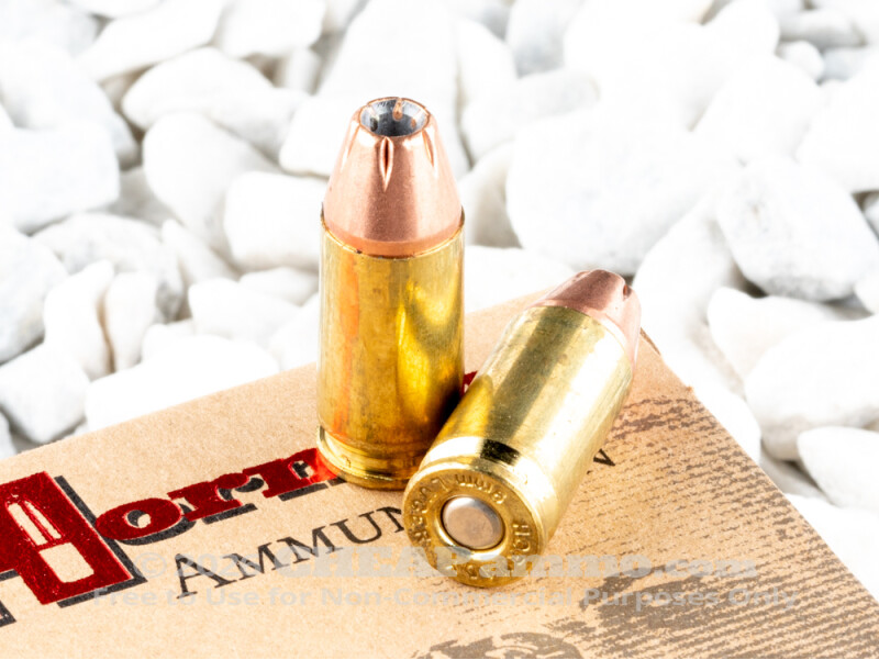 This is 9mm self-defense ammo, loaded with one of the most effective jacketed hollow point bullets Hornady has ever invented: the eXtreme Terminal Performance. The bullet owes much of its efficacy to its extensively engineered gilding metal jacket. It fully covers the edge of the lead core’s nose cavity, which enables smoother feeding into the chamber. It exhibits excellent concentricity, which keeps the bullet balanced in flight to promote better accuracy. It is also drawn instead of plated, which is why it becomes progressively thinner as it approaches the tip of the bullet. Alongside the rim’s precision serrations, its attenuated jacket allows the JHP to undergo broader expansion at lower velocities.