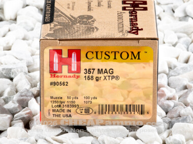 Hornady is probably a name you've come to know and trust. Their 158 grain jacketed hollow point (JHP) 357 mag ammo delivers a muzzle velocity of 1250 feet per second and just under 550 foot pounds of muzzle energy. The JHP Extreme Terminal Performance (XTP) is the perfect compromise between penetration and wound expansion: it is almost exclusively a self defense round but most experts will suggest you try any ammo you're going to rely on in a life-and-death situation during at least a couple range sessions.