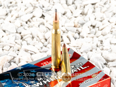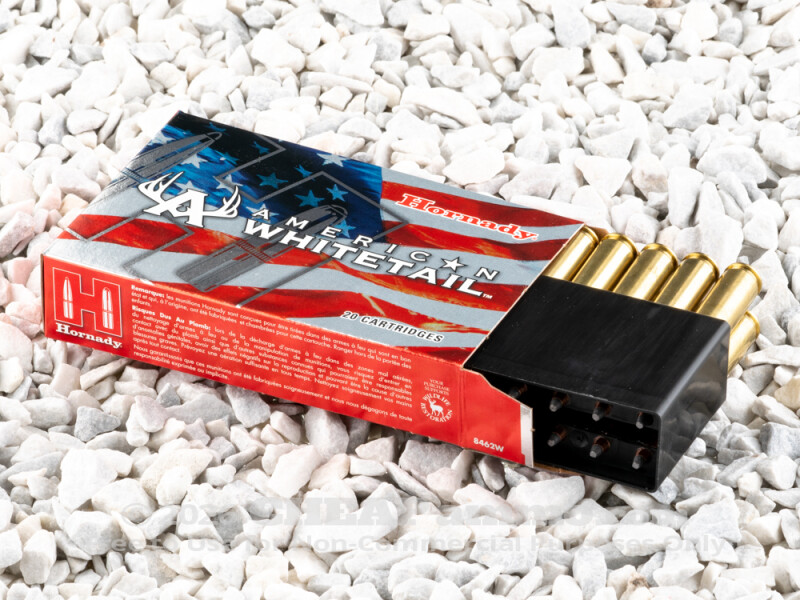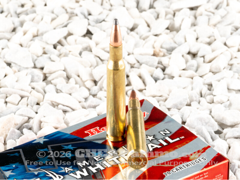 The 1920’s saw the development of several spin off calibers based on the .30 Springfield case. One of them was .270 Winchester ammo. Introduced in 1925 for the Winchester Model 54, the .270 remained a caliber only for committed shooting enthusiasts despite being suitable for long range target shooting as well as mid to large game hunting. It was not until after World War II that the caliber experienced a surge in popularity, this may be in part due to the number of surplus military bolt action rifles made available after the war and the .270 was a suitable conversion caliber, more readily available than the original chamberings of so many bring backs. The 130 grain soft point bullet by Hornady has a muzzle velocity of 3060 feet per second with 2702 foot pounds of energy. This is a good choice bullet for deer and boar hunting.