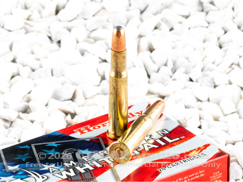 .30-30 Winchester Center Fire (WCF) is considered good medicine for anything that may cause issued in the woods of North America. As Winchester’s first smokeless powder cartridges, it has survived as one of the few bottle necked, rimmed cartridges into a second century of use. Quickly adopted as chamberings by many sporting rifle manufacturers, including direct competitors such as Marlin, it is considered ideal for anything up to large deer and comparable sized bears within 100 yards, depending on bullet type and barrel length. Hornady’s 150 grain soft point bullet exits the barrel at a velocity of 2390 ft per sec at 1902 ft lbs of energy and is an ideal deer round. Their American Whitetail branding of cartridges uses exposed lead tips for ideal ballistic performance and controlled expansion with an “Interlock ring” to control bullet density and mass upon entry. Two hundred rounds provides a good start to make sure your deer rifles are zeroed in at the start of the season.