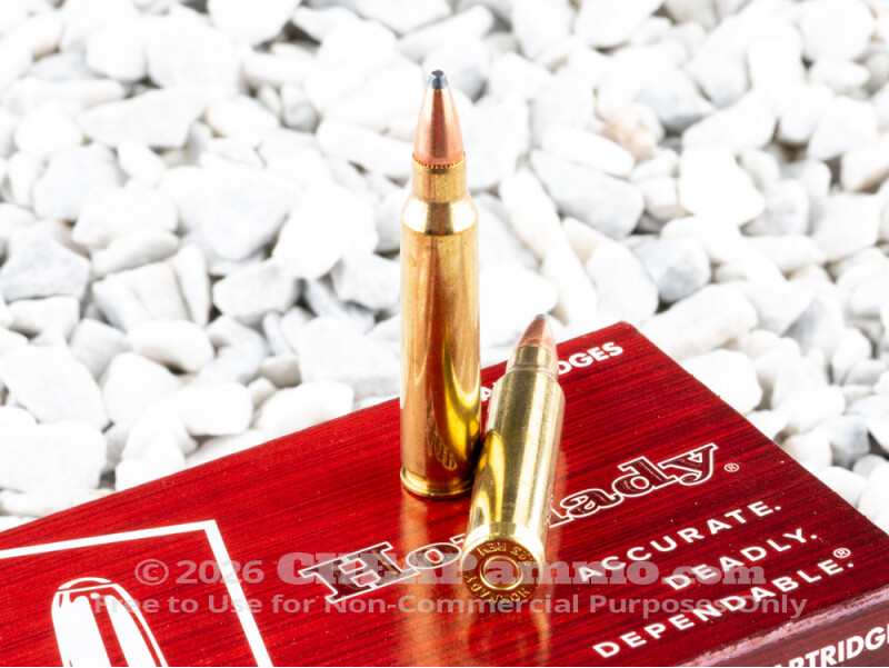 This cartridge is just as appropriate for hunting small game as it is personal defense, because it is loaded with Hornady’s own 55 grain soft point. Once the bullet has leapt out of a 24” barrel, its 0.235 G1 BC will see that it reaches 200 yards with approximately 75% of its 3,240 fps muzzle velocity remaining. The .22 cal bullet’s 0.157 sectional density and hard copper jacket both work toward effectively deep penetration to neutralize a threat. It’s capacity for wide expansion maximizes trauma to surrounding soft tissues. And hey – even if you only wind up using this ammo for target practice, you’ll still appreciate its highly consistent point of impact. That’s “Hornady polish” at work!