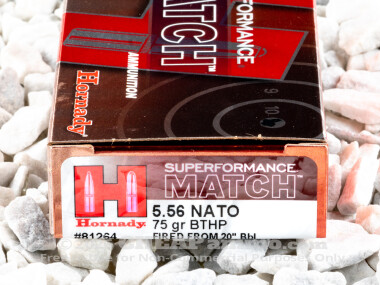 Hornady Superformance Match Hollow-Point Boat Tail (HP-BT) 75 Grain 5.56x45mm Ammo - 20 Rounds