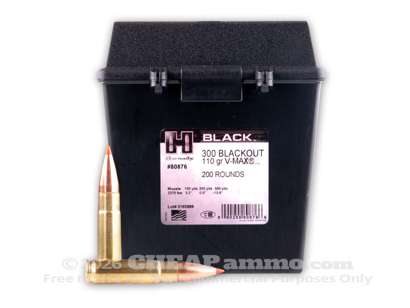 Hornady - V-MAX - 110 Grain 300 AAC Blackout Ammo - 200 Rounds