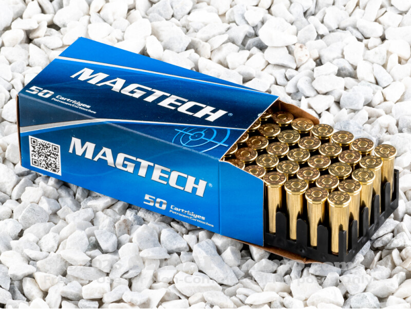 The .38 Smith & Wesson Special remains the most popular revolver cartridge in both law enforcement and civilian applications. Introduced in 1898 as an improved version of the .38 Long Colt, the Special quickly became a secondary personal military sidearm caliber as well as the standard police round from the 1920’s and beyond continuing to serve as such, especially in back up firearms as well as primary service weapons. Its inherent accuracy and manageable recoil make it popular among target and personal defense shooters as well as revolvers have a deserved reputation for reliability and never jamming. The 125 grain full metal jacket, flat nosed bullet by Magtech leaves the muzzle at 938 feet per second with up to 245 foot pounds of energy. Chosen for both range training and target shooting competitions, this is a suitable cartridge in both revolvers and long arms with tube magazines, thanks to its flat nose.