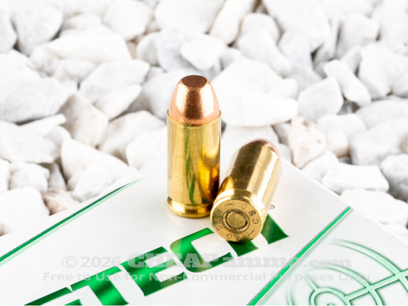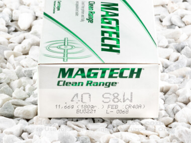 Chosen as a replacement for the service 9mm Luger of the Federal Bureau of Investigation in 1990, the .40 Smith & Wesson was half again as heavy as the 9mm with a velocity that tries to match it in velocity, delivering more kinetic energy into the target. Essentially developed as a 10mm Auto short, the 165 grain round delivered the desired ballistics yet with a recoil that still tended to be more than many agents were comfortable with. The 180 grain, however, is a little slower and less snappy: delivering energy similar to a .45 acp. The 180 grain fully encapsulated bullet by Magtech has a muzzle velocity of 990 feet per second with 392 foot pounds of energy behind it. The encapsulated bullet seals the lead within a full jacket removing the threat of lead particles being discharged into the air: making this a perfect round for training and target shooting in indoor ranges.