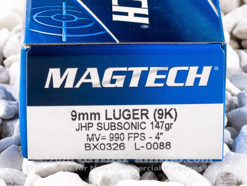 Introduced in 1902, the 9mm Parabellum by Georg Luger eventually became the primary sidearm caliber in the world and remains so to this day. For military, police and private use in recreation and defense, its reliability and economy keep it a popular choice. The 9mm Luger is often perceived as a round prone to over penetration and under expansion in the target, and this may be true of full metal jacketed, target shooting or range ammunition. Defensive specific bullets, on the other hand, are designed not to over penetrate and transfer their ballistic energy into the target. The 147 grain jacketed hollow point bullet by Magtech has a muzzle velocity of 990 feet per second with 320 foot pounds of energy. This is suitable for personal defense as well as for use in firearms with a suppressor that require subsonic velocities.