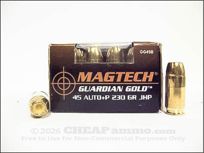 For a great many carriers, firing .45 acp ammo just “feels” safe. The characteristics of the cartridge have always been large and slow, but that translates into stability, accuracy and transfer of energy into the target rather than simply passing on through with little effect – or more importantly posing a threat to innocents down range. Therefor it is not surprising at all that it remains a popular choice for personal defense both in and out of the home. Magtech’s Guardian Gold is loaded to higher pressure (+P) tolerances than standard ammo, which nudges it just over the 1000 feet per second mark, so use in older firearms is not recommended while consultation with modern gun’s manufacturing specs is. Especially for the consistent use in training that this 1k round case inspires. The 230 grain jacketed hollow point bullet has a muzzle velocity of 1007 ft per sec and can hit with up to 518 foot lbs of energy. That tends to make an impression on any defensive shooting scenario.