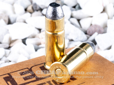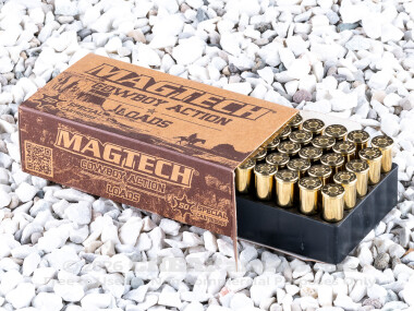 Magtech’s 200 grain lead flat nosed bullet possesses a muzzle velocity of 721 feet per second with 231 foot pounds of energy. This is an easy shooting range round that is also superb for use in Wild West style competitions, safe for use in tube fed magazines, like Winchester, thanks to the flat front not posing a discharge hazard to the next round during recoil.
