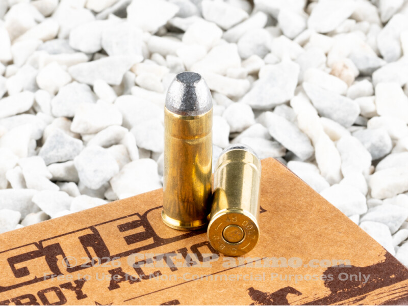 Few calibers are more iconic than the .45 Long Colt – with the possible exception of the .45 ACP, of course. But the Colt .45 is the round John Wayne, Clint Eastwood, Audrey Murphy and every other favorite western gunslinger – wearing either a white or black hat – used to get the job done. Developed between 1871-1873, this cartridge was developed, then adopted for use by the US military as well as every cowpoke, armed gentlemen and outlaw throughout the country. And it is still a favorite round of single action shooters and traditionalists all over the country to this day. Magtech's 200 grain flat nosed lead bullet has a muzzle velocity of 705 feet per second with 221 foot pounds of energy. This is a perfect, slow moving round for target shooting and single action shooting sports.