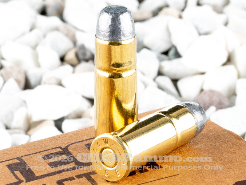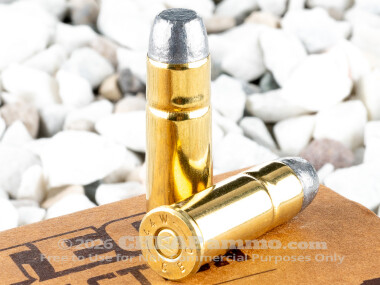 .44-40 ammunition was introduced with their iconic Model 1873 Winchester lever action carbine and rifle series. The caliber and product worked so well that it inspired Colt to offer their Peacemaker/SAA in the same caliber for a long arm to side arm compatibility. Cross brand cooperation was something of an unusual occurrence, but when something worked well, there was no point in fighting it and the .44-40 became a direct competitor of the famous .45 Long Colt. The 225 lead flat nosed bullet has a muzzle velocity of 725 feet per second and 261 foot pounds of energy. The cartridge is well suited for use in target practice but also for Single Action Shooting competitions and cowboy reenactments. It is ideal for use in all lever action firearms without fear of a pointed bullet inadvertently setting off the primer in front of it during recoil.