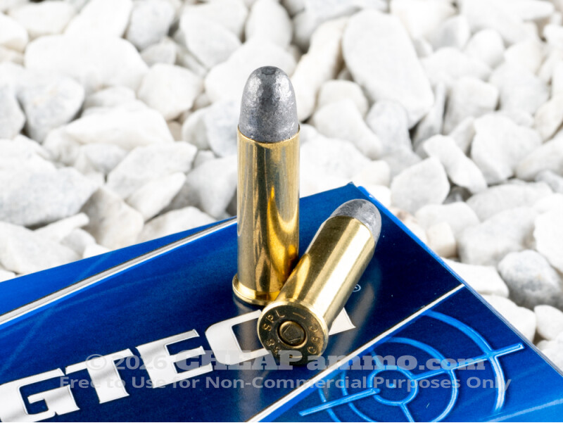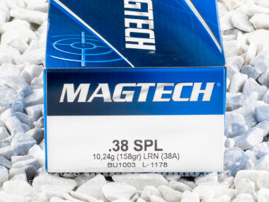 Magtech's 158 grain lead round nose bullet loaded into this 38 special ammo brings a muzzle velocity of 750 feet per second with 200 foot pounds of energy. It is an easy shooting round well suited for target practice as well as single action shooting competitions where its reduced recoil will not negatively impact your shooting timed score.