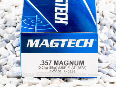Lawmen, hunters and recreational shooters enjoy the versatility of the .357 Magnum, not only for the chamberings available in both long guns and handguns but also for the ability for those firearms to shoot different calibers - .38 Special variants. Initially designed by request of law enforcement in the 1930’s the magnum has gone on to become a popular hunting and target shooting round as well. The 158 grain semi jacketed soft point bullet by Magtech has a muzzle velocity of 1235 feet per second with 535 foot pounds of energy. It is good for target shooting as well as range training, but can serve well also as a personal defense round where hollow point or expanding bullets are classified as illegal. This 1000 round case lot is perfect for keeping on hand for training day or just for peace of mind.