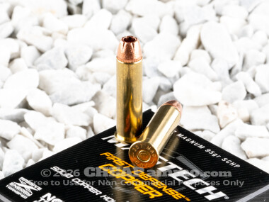 The post World War I era in America saw the rise of the gangsters and a growing competition among ammunitions designers to provide law enforcement with ways to compete against high profile criminals who often outgunned and out ran them. Of course, the criminals got to these new upgrades just as fast as the cops, but that just helped weed out what worked and what did not. The .357 Smith & Wesson Magnum worked. Basically a stretched .38 S&W Special, the .357 provides greater velocity and penetration than what was standard then and even today. Still used by law enforcement that held to their revolvers but embraced by hunters and sports shooters, the .357 is perfect for wheelgun shooters who don’t feel the need for the big bores. The 95 grain solid copper hollow point bullet by Magtech has a muzzle velocity of 1411 feet per second with 420 foot pounds of energy. SCHP rounds expand uniformly and at specific penetration levels.