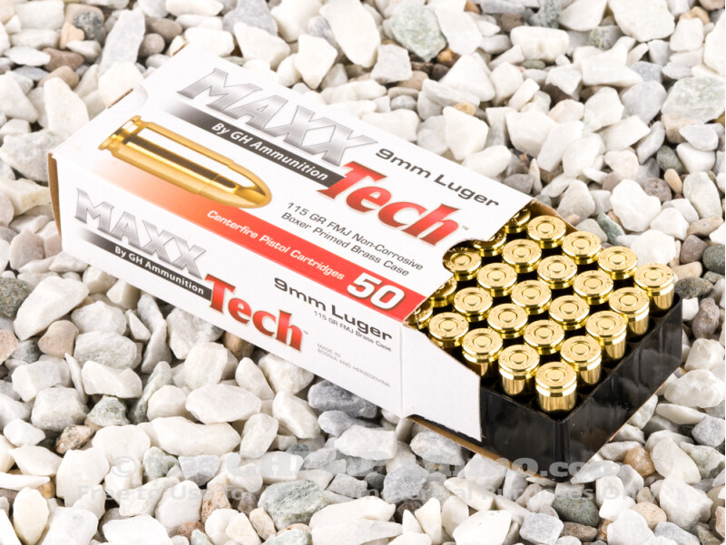 MAXXTech - Full Metal Jacket - 115 Grain 9mm Ammo - 50 Rounds