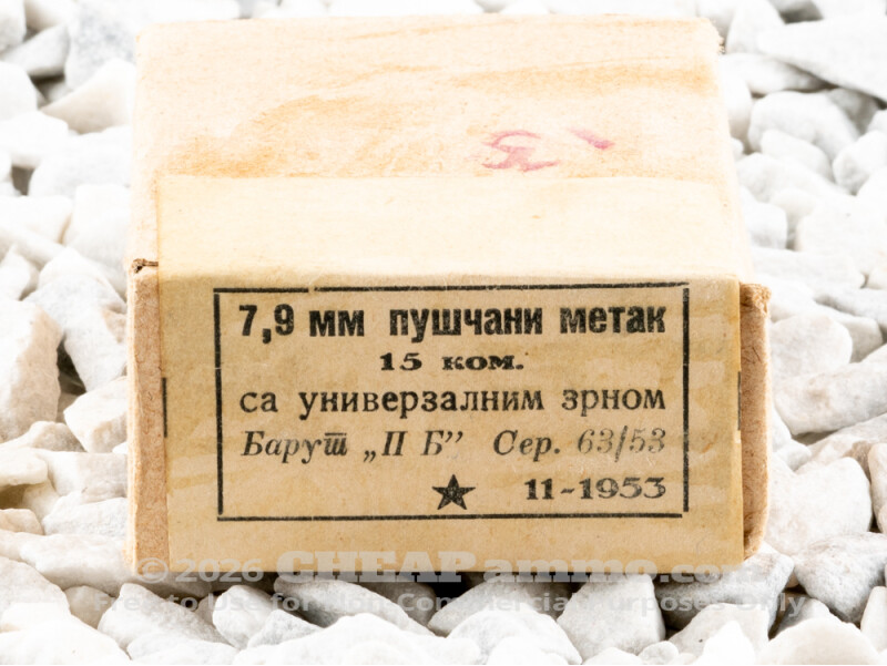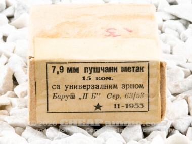 These 196 grain military surplus rounds have a muzzle velocity of approximately 2600 feet per second delivering just under 3000 foot pounds of energy. They appear to be 1950’s Yugoslav production for military use, so are perfect for military Mausers or other military style firearms in this chamber. The 300 round lot is perfect for keeping on hand for the “what if” scenario (they’ve waited this long) or for taking to the range to get the historical relic back into action.