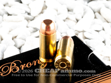 The .40 Smith & Wesson was designed as a 10mm Auto “short” to duplicate the larger round’s terminal ballistics while providing reduced recoil for the shooter. When it was adopted in 1990 by the FBI many US law enforcement agencies followed suit. While it has been replaced again recently, many shooters have embraced the caliber for personal use in both competitive and defensive purposes. The 180 grain full metal jacket bullet by PMC has a muzzle velocity of 985 feet per second with 388 foot pounds of energy. This essentially duplicates the performances of a .45 ACP while providing for a higher capacity, yet slimmer magazine. This also results in a slightly more manageable recoil with less snap than what the lighter, faster, .40s are known for. This is an ideal training and target shooting round.