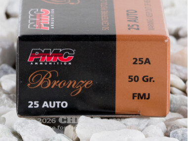 PMC loads noncorrosive Boxer primers and clean-burning powder, as well as freshly minted solid brass cases. Get your hands on some .25 cal projectiles and you’ll be able to load that brass!