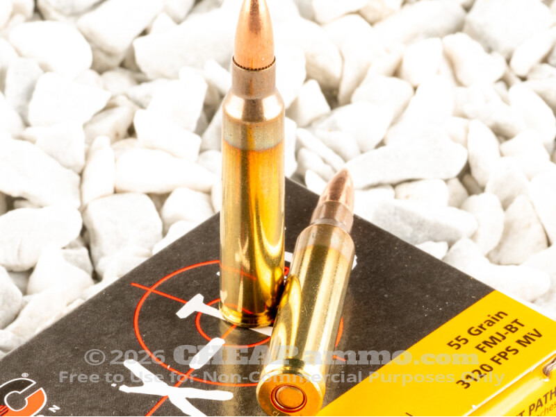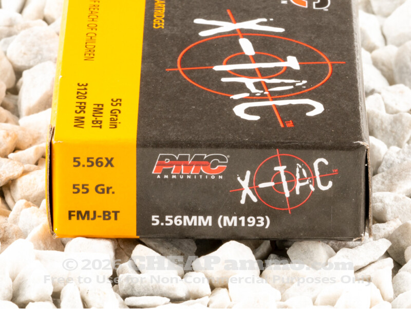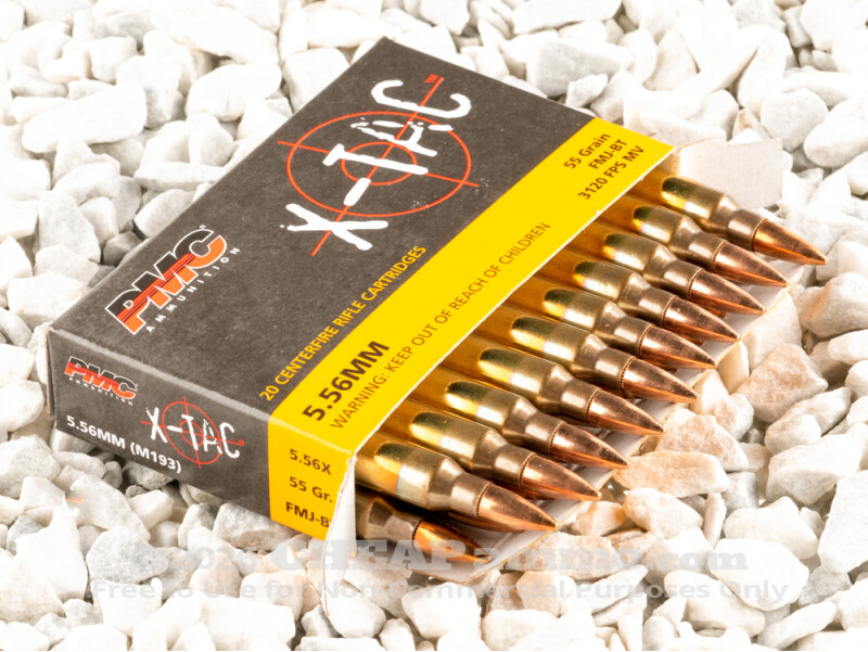 In the 1950’s the US military began its search for a new standard military round to supplement the newly adopted 7.62x51 NATO. The goal was to find a cartridge with similar effectiveness at range yet be much more manageable for sustained automatic fire from hand held service rifles by individual soldiers. The result was the .223 Remington, which was shortly after up-pressured to become the current 5.56mm NATO round. While physically very similar to the .223 and able to be chambered in those chambers, this round should not be fired in .223 chambered firearms. PMC’s X-Tact 55 grain full metal jacket rounds exit the muzzle at 3,120 feet per second with 1,189 foot pounds of energy. This 1000 round case lot is ideal for keeping on hand for training day, competitions or for any number of “what if” scenarios.