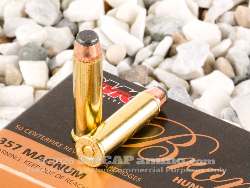 This 357 Magnum cartridge features a 158 grain jacketed soft point projectile. It is suitable for self-defense owing to its tendency to deform and tumble within a soft target, but by no means impractical for regular range training as well. It will still keep your bore less adulterated by lead fouling as you’re needlepointing targets!