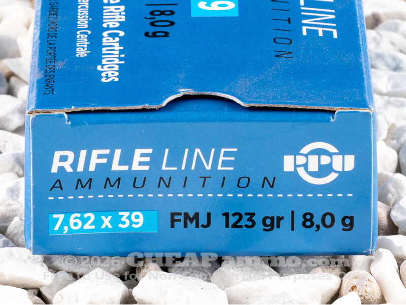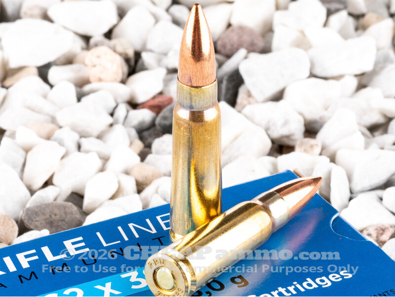 Starting in 1943, the Soviet Union started exploring an intermediary round for its military: something more potent than their submachine gun round but that could also be more controllable in quick fire mode than a full rifle round. The ultimate result was the 7.62x39mm rifle and ammunition. Perhaps the most prolific round thanks to Soviet export as well as Warsaw Pact and Chinese copying, the rounds reliability has kept it in full service even after it has been officially replaced by the Russians. It remains a popular choice for knock down power as well as easier visibility of strikes on paper targets. The 123 grain PRVI FMJ round has an estimated muzzle velocity of just under 2400 feet per second with 1550+ foot pounds of energy. The brass case makes this an ideal choice for use in a number of sporting and bolt action rifles chambered in this caliber as it creates less stress on the firearm than the steel cases.