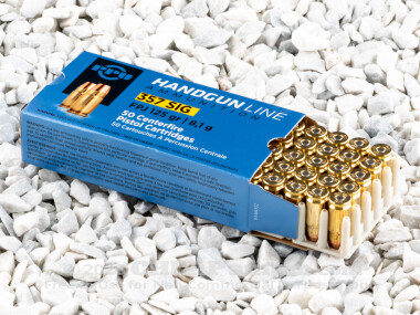 This Prvi Partizan bulk 357 Sig ammo is an ideal training round for the range. The 125 grain full metal jacket (FMJ) flat nosed bullet has a muzzle velocity of 1,350 feet per second with 500 foot pounds of energy. It offers impressive penetrative capabilities and is perfect for range training and target shooting.