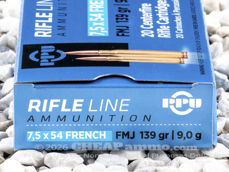 This ammo is loaded with 139 grain full metal jacket bullets by PRVI and delivers a muzzle velocity of 2723 feet per second and 2284 foot pounds of energy. The 7.5 was never really adopted commercially and only the French military (and Foreign Legion) adopted the cartridge. Military collectors focusing on this period are no doubt tickled that modern production has been taken up by PRVI.