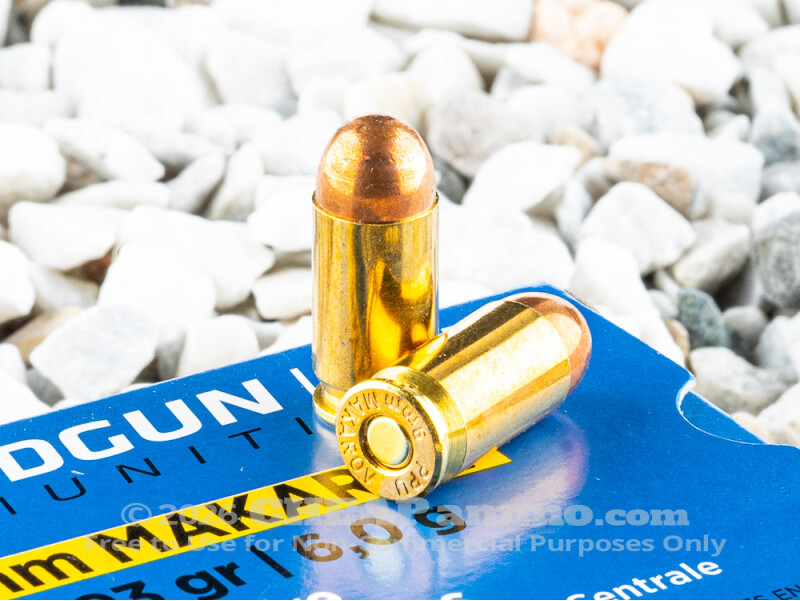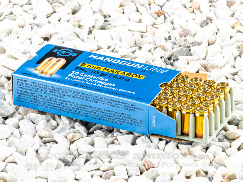 Designed in 1947 and released for military use in 1951, the 9mm Makarov was designed to bridge the gap between the direct blowback reliability of the .380 ACP and the harder hitting power of the 9mm Luger. As such it met the very letter of the USSR in its military philosophy: cheap to make, reliable to use and hard hitting, especially for its size. It quickly replaced all other pistol calibers in the Warsaw Pact alliance, even the venerable 7.62x25, to insure no logistical issues. Now, after that alliance's dissolution, the Makarov is still enjoyed for its simplicity and reliability by government and civilian shooters alike. The 93 grain full metal jacket round has a muzzle velocity of 1000 feet per second and 200 foot pounds of energy. It is ideal for target range and training with your eastern bloc surplus sidearms.