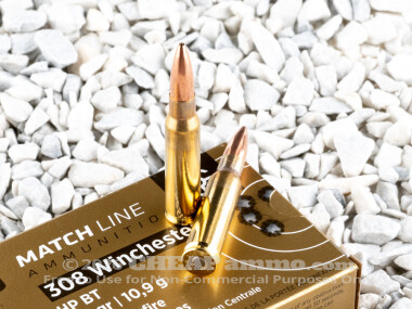 While the civilian .308 Winchester cartridge is loaded to slightly less pressure than the NATO round, this one here is also a hollow point, something that our servicemen are restricted from using in the field. The 168 grain hollow-point boat tail round has muzzle velocity of approximately 2600 feet per second packing a wicked and accurate punch out to 800 yards and beyond in the hands of a reasonably trained rifleman. Cases are brass, boxer primed and are therefore capable of serving the precision reloader beyond just one and done. What are you waiting for? Pick up a box and try it!
