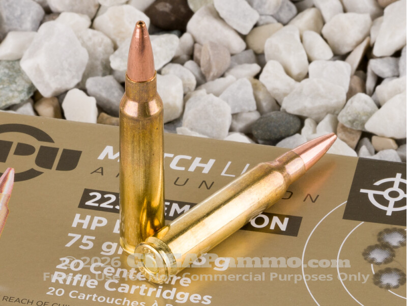Prvi Partizan - Hollow Point Boat Tail - 75 Grain 223 Remington Ammo - 20 Rounds