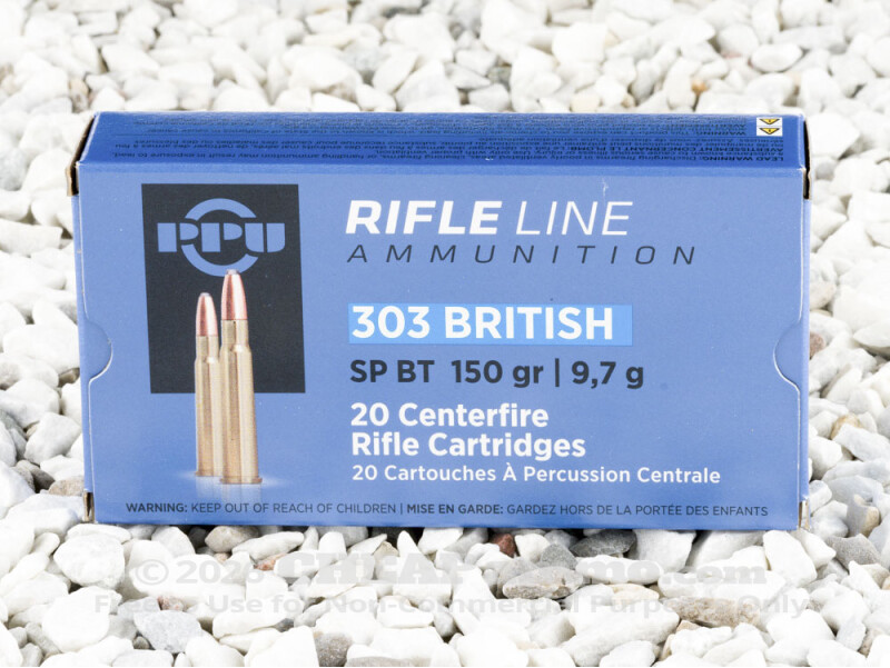 The smokeless powder loaded .303 British rifle round was introduced in 1891 from its own black powder round presented three years before. It remained the standard rifle and machine gun round of the British Empire and all Commonwealth troops for over sixty years, mostly for use in the Enflied series of stout battle rifles. The sheer number of surplus rifles ensures that “sporterized” versions of these rifles are in great supply throughout the world. The 150 grain soft point bullet by Partizan leaves the barrel at 2690 feet per second with 2410 foot pounds of energy. This is a good deer, or similar sized game hunting round on every continent of the globe – and is used such in what is now former components of the British Empire. It offers very good aerodynamics to, and controlled expansion within, the target, delivering its energy there rather than passing on through as mil surplus rounds may.