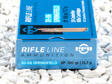 The 180 grain soft point bullet loaded into this 30-06 ammo by PRVI exits the muzzle at 2960 ft per sec with 2892 ft lbs of energy. It is a competent hunting round with this 500 round lot providing plenty of opportunities to zoom in before the season as well as for use in military style rifle shooting.