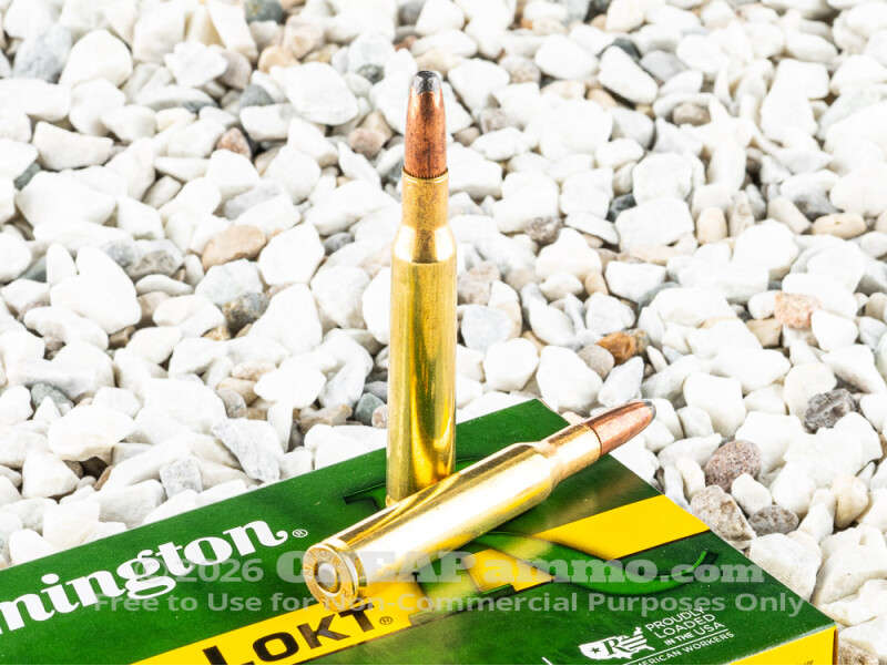 .270 Winchester ammunition was introduced in 1925, two years after its development for the bolt action Winchester Model 54 rifle. Its parent case is the .30-03 Springfield, but necked down into a long distance, hard hitting big game and silhouette competition round. As such it shares a link to the venerable .30-06 Springfield. Since its introduction, the .270 has become one of the most prolific of the small bore sport hunting rounds in the world. The 150 grain soft point bullet by Remington has a muzzle velocity of 2850 feet per second with 2705 foot pounds of energy, capable of taking on most any game found in North America. The Remington’s Core Lokt bullet guarantees maximum expansion while retaining its mass for deep penetration, it is an ideal hunting cartridge.