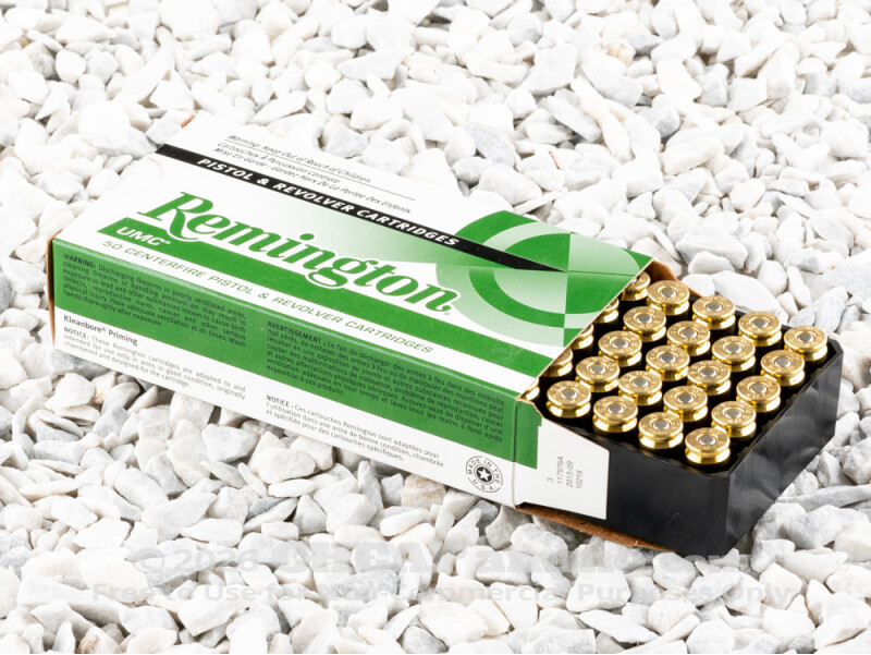 UMC. It’s Remington’s standard range and target ammo, named after the Union Metallic Cartridge Company they merged with back in 1912. If you’re looking for nice light loads that you can use to rough up range targets, then you should be tickled pink by this 10-box case of 40 S&W ammo!