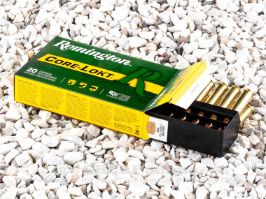 Remington’s 165 grain soft point, Core Lokt bullet has a muzzle velocity of 2800 feet per second with 2872 foot pounds of energy. The Core Lokt style of bullet by Remington is a decades old proven design for optimum accuracy and maximum expansion into the target without losing the bullet’s mass. It is capable of taking medium and large game in the Americas as well as quite a bit of game in Africa.