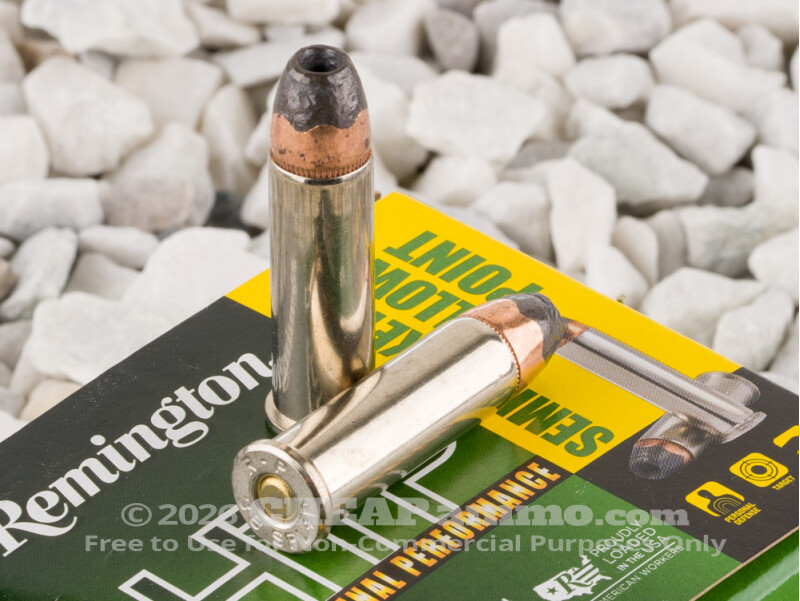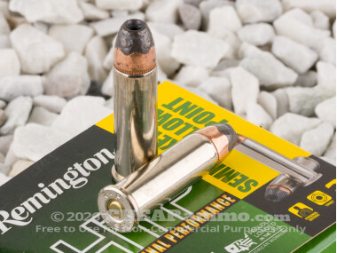 This cartridge features Remington’s semi-jacketed hollow point. Its light 125 grain weight and added chamber pressure are enough to give it nearly 250 ft lbs of energy as it exits a revolver’s barrel. When the SJHP’s nose cavity springs into action, it yields widespread terminal expansion. And thanks to its resilient partial jacket, the bullet also holds onto the weight and momentum it needs to bore deeply into soft tissue.