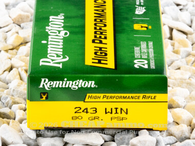 Remington - Soft Point - 80 Grain 243 Winchester Ammo - 20 Rounds