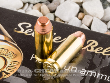 This round’s just the thing for developing your skills at a range stall. Its 180 grain projectile is sheathed in a hard full metal jacket, so it won’t stall en route from magazine to chamber nor will it leave your weapon’s bore a leaden mess. Sellier & Bellot’s decades in the business have left them able to fabricate a uniformly dense core and concentric jacket, so this bullet won’t spin out before you can earn your bullseye, either. The bullet further sports a truncated cone profile, a form that not only even better guarantees reliable feeding, but which also stamps a clean hole through a paper target. The effect is a shot that will give you visible feedback on your aim, even from downrange, as well as unambiguous results that you’ll have an easier time of scoring.